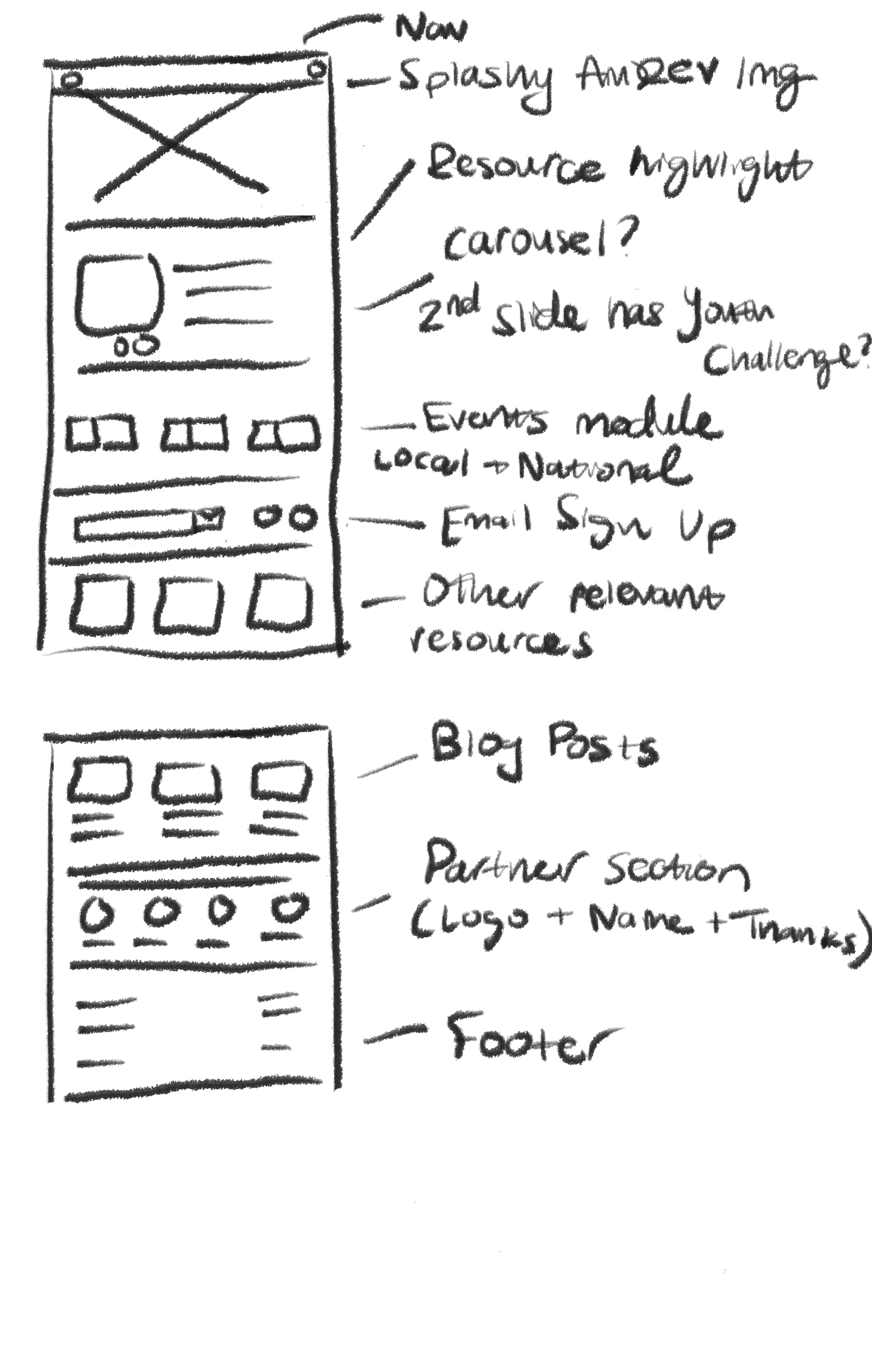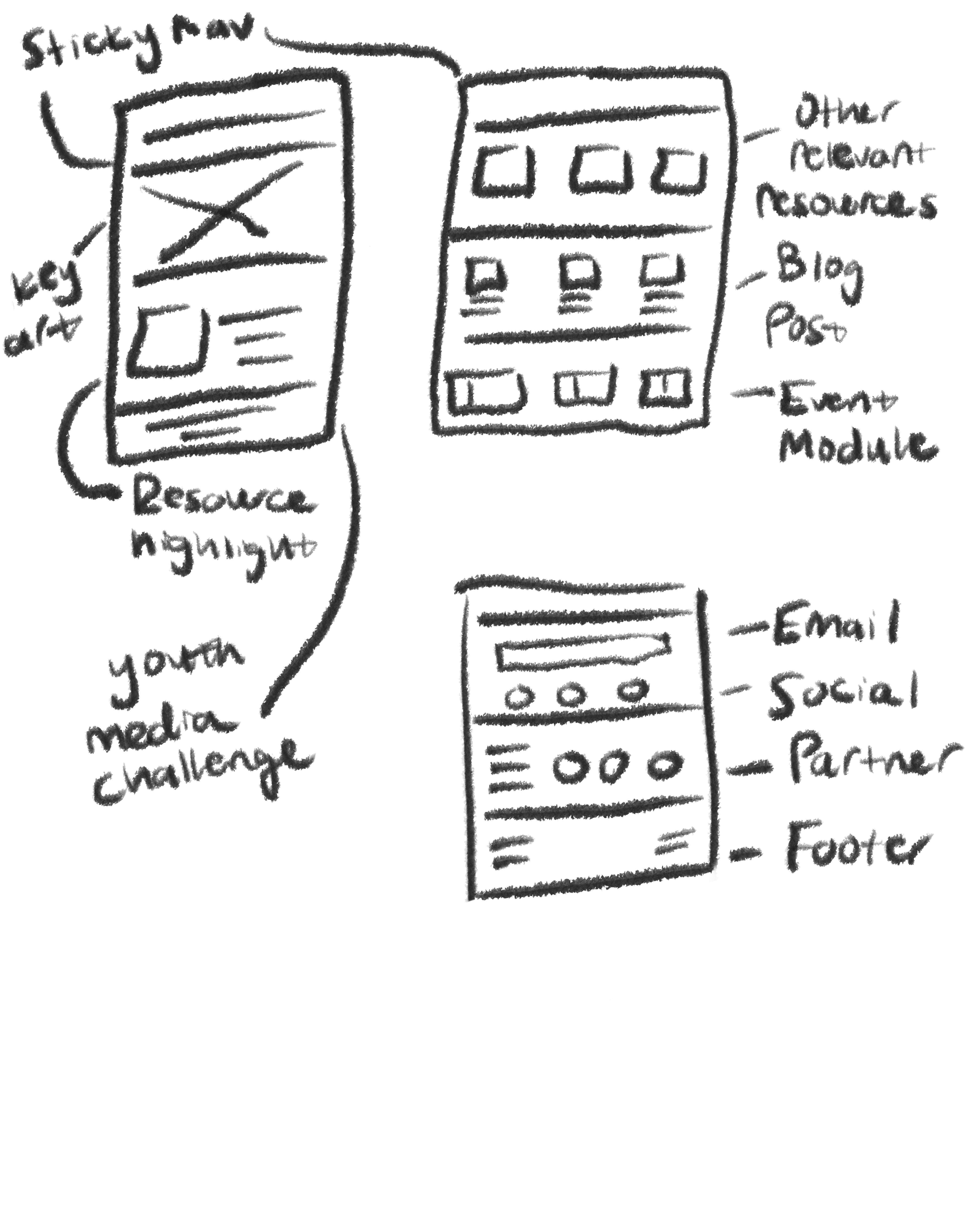 With our insights from the competitive scan, initial wishlist, and conversations with developers and a SME for our CMS, I began sketching ideas for how the page would be laid out.