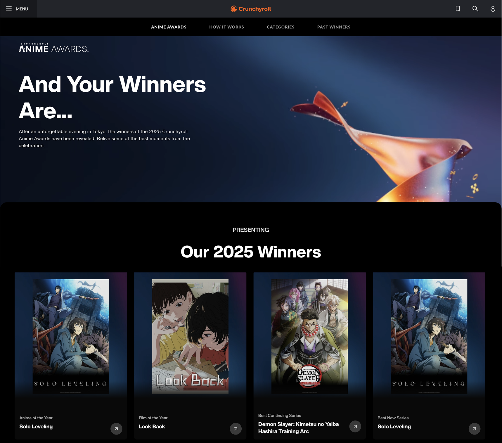 We also looked at sites that weren’t necessarily related to Education but had big splashy event pages with lots of visual elements such as the Crunchyroll Anime Awards page.