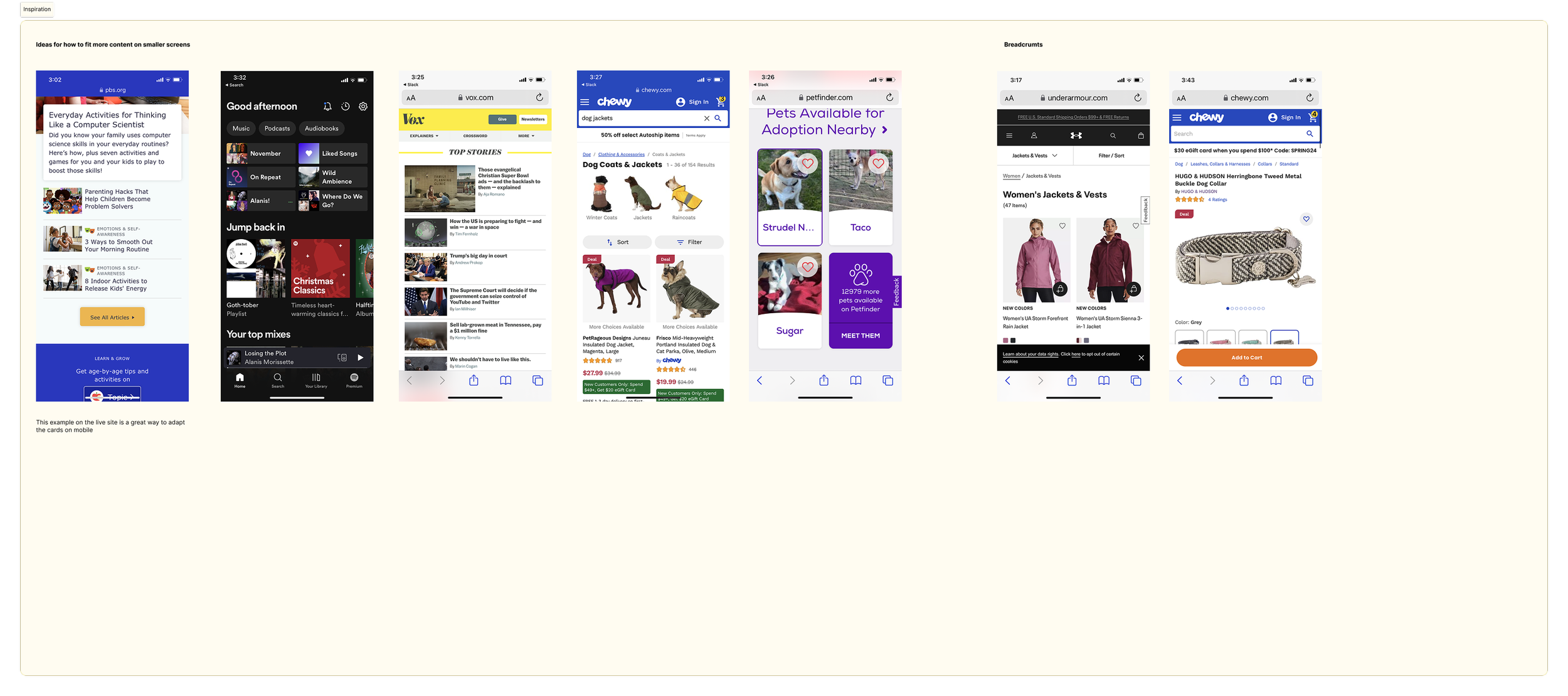 We also included some apps that weren’t necessarily in the caregiving space such as Vox, Chewy, Under Armour, and Spotify as examples of how to organize large amounts of content.