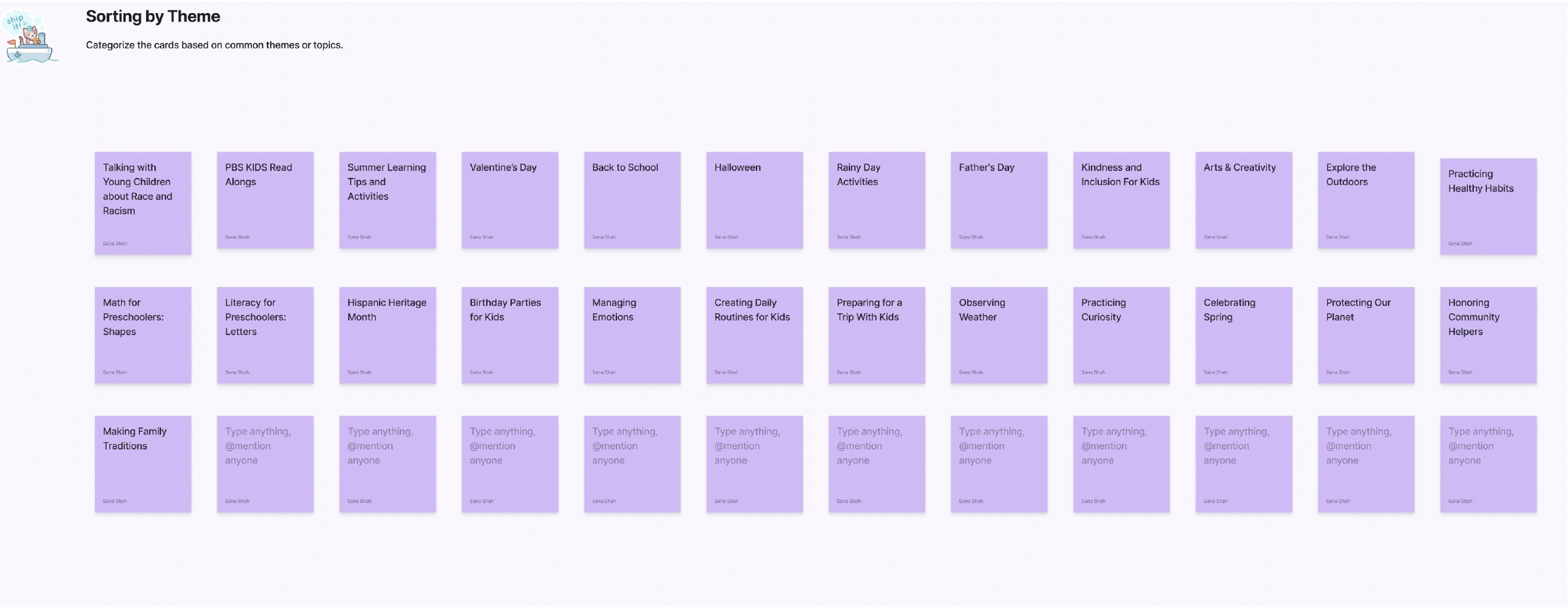 We had each user sort 25 collections into themes that made sense to them. We also included extra stickies in case they thought of their own collection names.