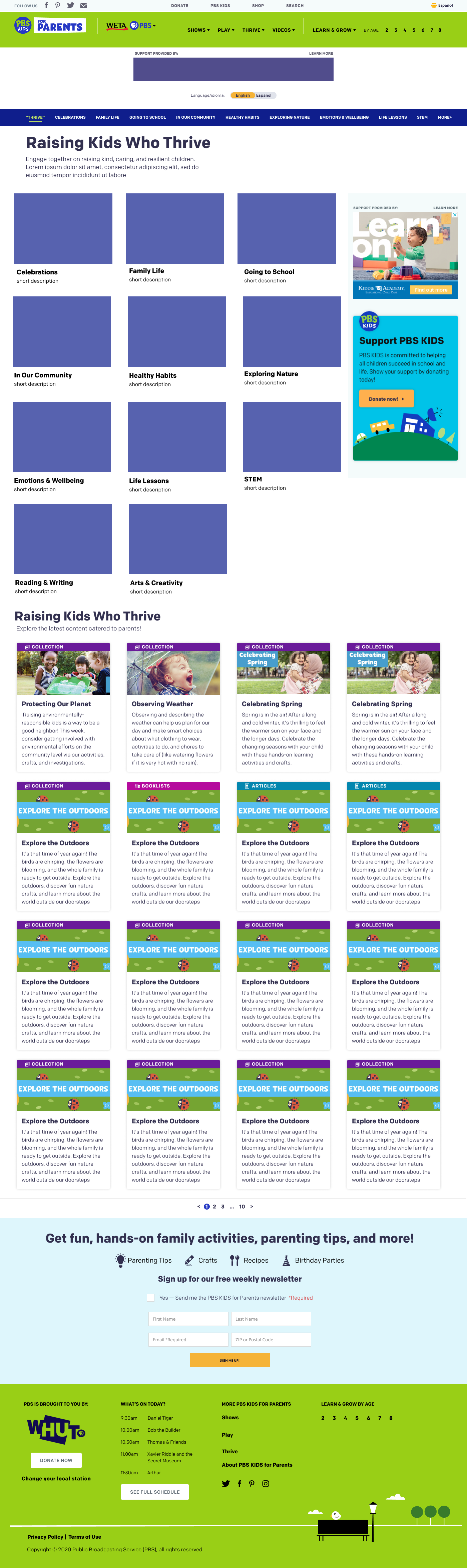 The research informed us that parents expected to find collections on the Thrive page, which currently housed our articles.